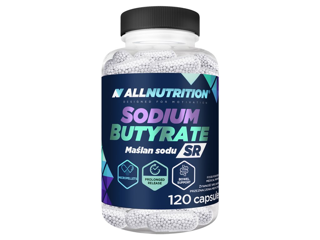 ALLNUTRITION SODIUM BUTYRATE SR je potravina na zvláštne lekárske účely vo forme kapsúl s predĺženým uvoľňovaním, ktorá poskytuje kyselinu maslovú, základný energetický materiál pre epitel tráviaceho traktu.