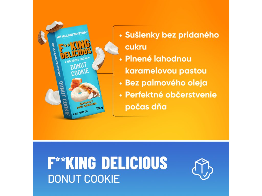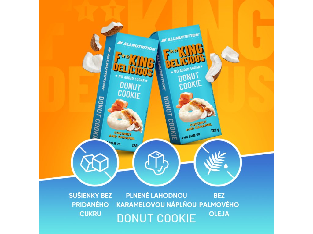 Užite si sladkú chuť bez zbytočného cukru! ALLNUTRITION FITKING DELICIOUS DONUT COOKIE sú ideálne na občerstvenie počas dňa, po tréningu alebo ku káve.