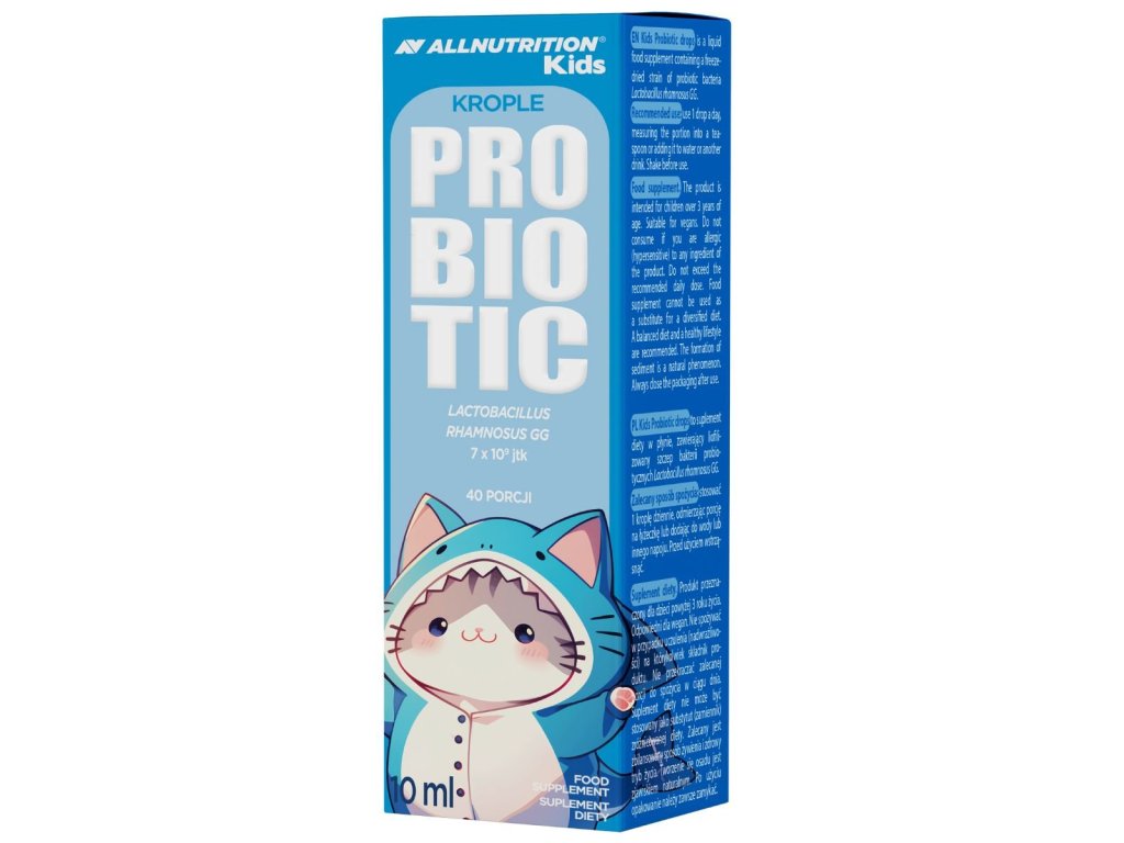 ALLNUTRITION KIDS KVAPKY PROBIOTIC sú jemné probiotické kvapky určené pre deti od 3 rokov. Obsahujú probiotický kmeň Lactobacillus rhamnosus GG, jeden z najlepšie preskúmaných a vedecky zdokumentovaných probiotických kmeňov na svete. Tento „priateľský“ mikrób podporuje rovnováhu črevnej mikroflóry, čo prispieva k správnemu fungovaniu tráviaceho systému a celkovej pohody vášho dieťatka.