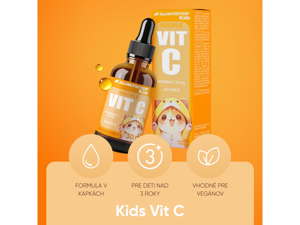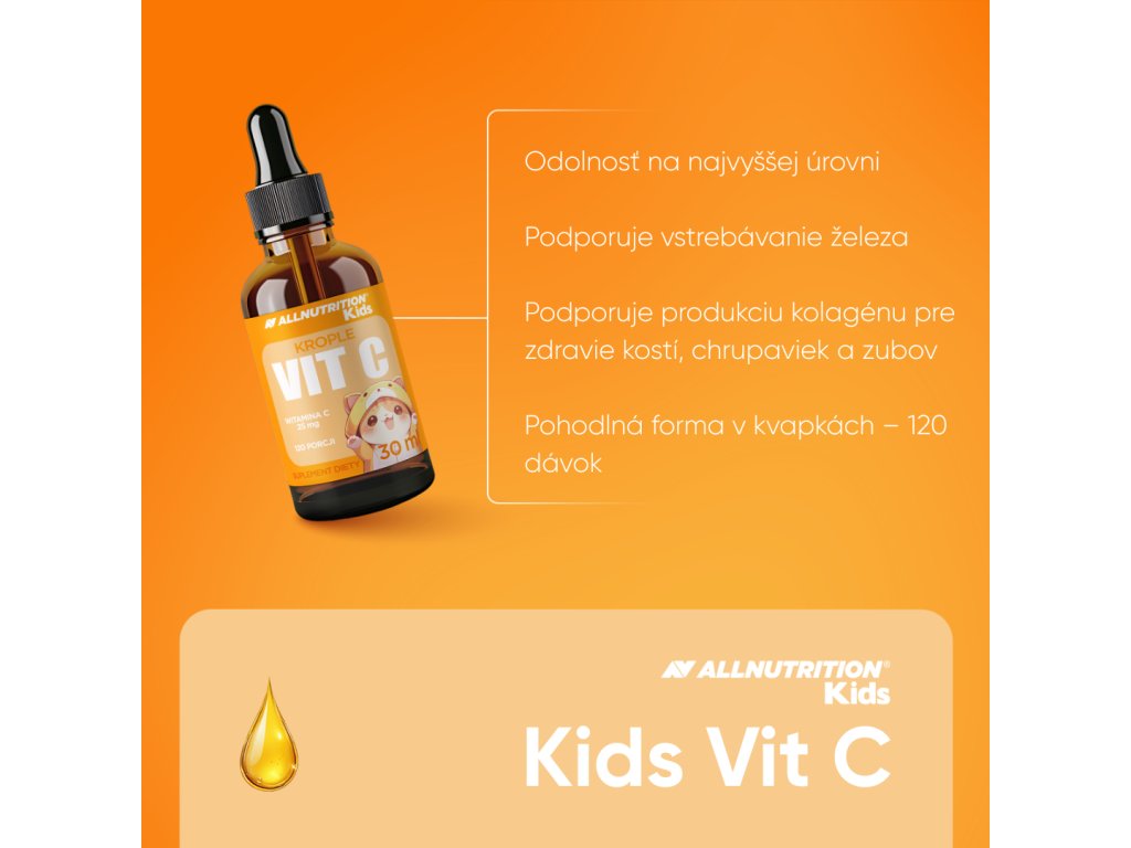 Zdravie a správny vývoj dieťaťa sú prioritou každého rodiča! ALLNUTRITION KIDS VIT C je doplnok stravy vo forme praktických kvapiek, vytvorený špeciálne pre deti od 3 rokov.