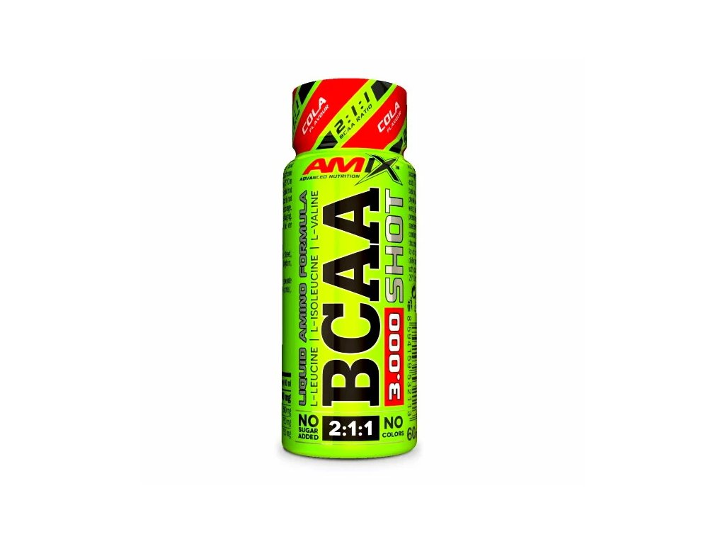 Amix nutrition BCAA Shot je doplnok stravy v tekutej forme vo vreckovom balení s obsahom esenciálnych aminokyselín s rozvetveným reťazcom BCAA v pomere 2: 1: 1. Vynikajúcou vlastnosťou tohto výrobku je schopnosť podporovať rýchlu regeneráciu po náročnom tréningu, podnecovať rast svalov a zabrániť strate svalovej hmoty, predchádza pretrénovaniu svalov a posilňuje obranyschopnosť organizmu. Tieto BCAA zahŕňajú leucín, isoleucín a valín.