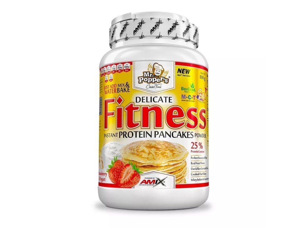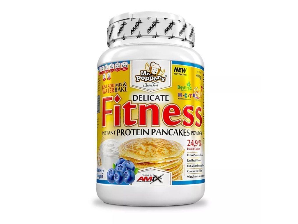 Mr. Popper’s® Fitness Protein Pancakes sú ideálnou voľbou pre rýchle a chutné fitness raňajky. Zmes obsahuje kúsky ovocia a jej príprava je maximálne jednoduchá – stačí pridať vodu, zamiešať a upiecť na panvici.