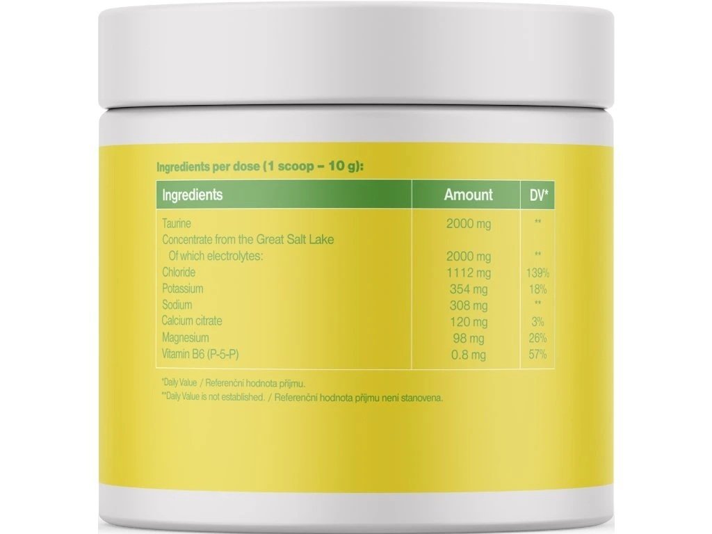 Produkt je obohatený o taurín, vápnik a vitamín B6 v aktívnej forme P5P. Táto starostlivo vyvážená kombinácia dopĺňa elektrolyty z Veľkého Soľného jazera v Utahu a prináša komplexnú podporu pre vaše telo.