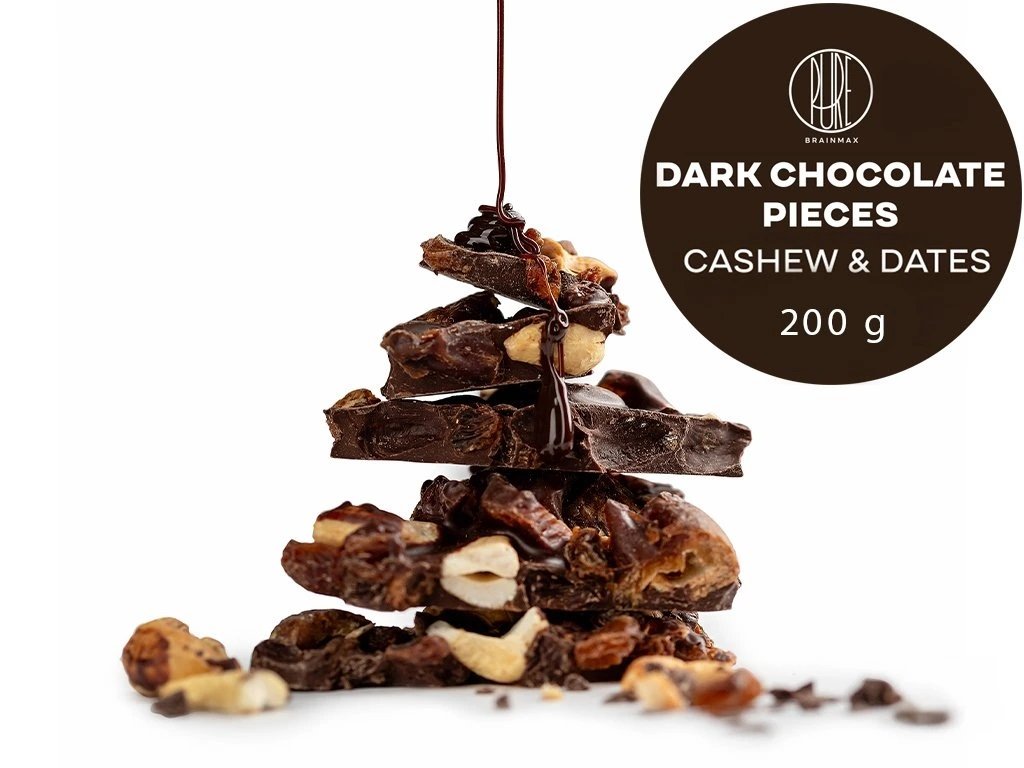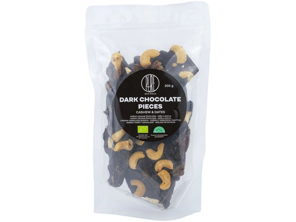 BrainMax Pure Lámaná čokoláda horká, kešu a datle BIO 200 g