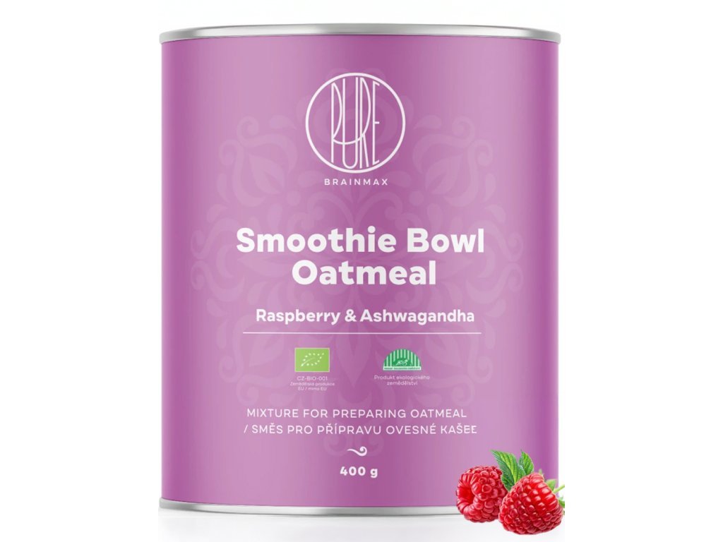 BrainMax Pure Ovsená kaša, malina a ashwagandha, BIO, 400 g