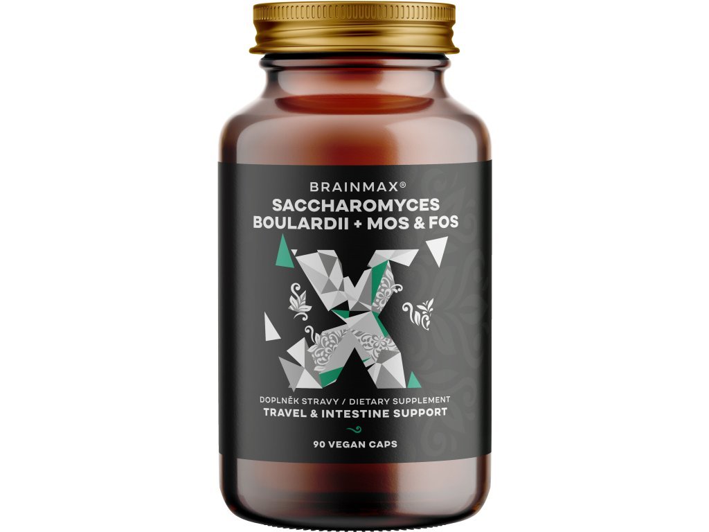 BrainMax Saccharomyces boulardii - Cestovné probiotiká s MOS & FOS 90 kapsúl