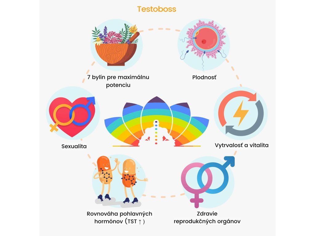 Dnešná doba sa vyznačuje tým, že mužom neustále klesá hlavný pohlavný hormón test0sterón, ktorý z nich robí mužov. Muži bez test0sterónu sa potom stretávajú s nízkym sebavedomím, depresiami, nadváhou a celkovou nechuťou nechuťou k sexu a životu. Často si ani neuvedomujú, že pomyselný prameň života, ktorý im chýba by mohol byť test0sterón. Preto sme prišli s testobossom, v ktorom sú byliny a živiny, ktoré môžu pomôcť dostať test0sterón u mužov na zdravú úroveň.